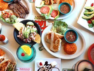 Freshly made chips topped with refried beans, queso loco, lettuce, pico de gallo, cheddar cheese, and jalapeños with your choice of taco meat or shredded chicken. 14.99 Beef or chicken fajitas. 15.99